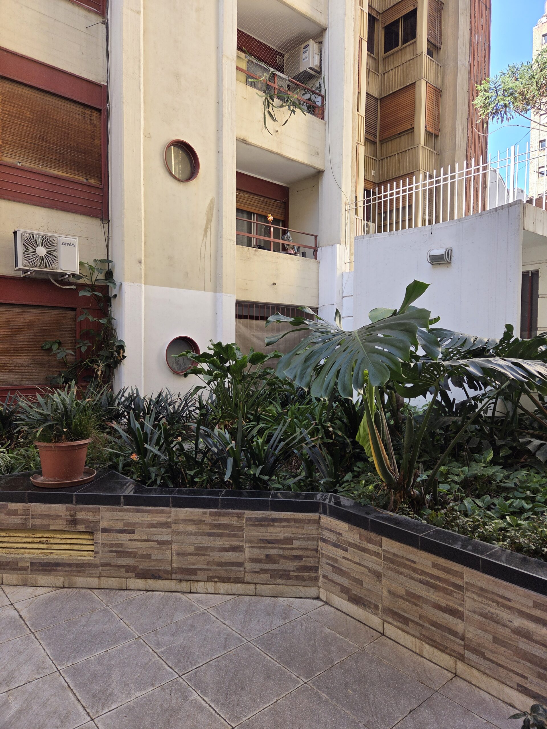 Triple ingreso al edificio. Cámaras de seguridad.